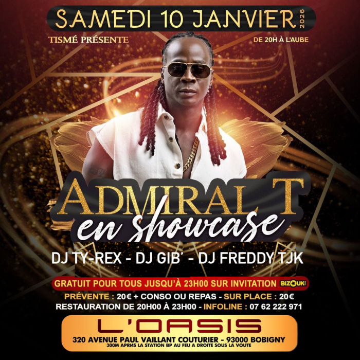 Entre prestige artistique, ambiance festive et accessibilité, le showcase d’Admiral T au Oasis s’impose comme l’un des temps forts de ce début d’année 2026. Une soirée pensée pour les passionnés de musique caribéenne, les fêtards et tous ceux qui souhaitent vivre un moment unique, porté par l’énergie d’un artiste légendaire.